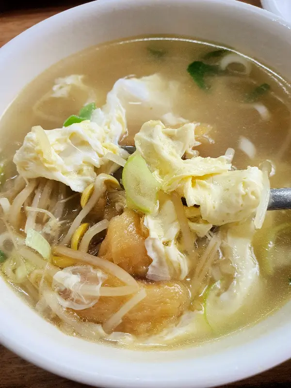 함께 나온 황태해장국 또한 빼놓을 수 없다. 뽀얀 국물 위로 송송 썰린 파가 듬뿍 올려져 있고, 은은한 참기름 향이 식욕을 자극한다. 한 숟갈 떠먹으니, 시원하면서도 담백한 국물이 속을 부드럽게 감싸 안는다. 전날 과음으로 속이 불편했는데, 황태해장국 덕분에 속이 확 풀리는 기분이다.
