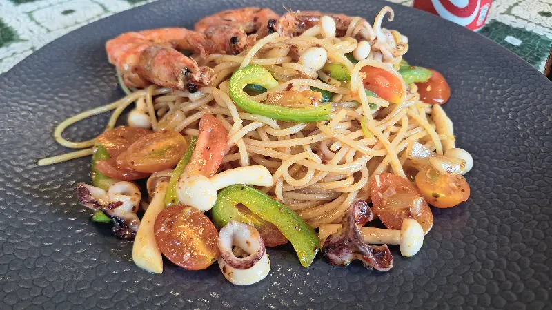 드디어 기다리고 기다리던 스파게티가 나왔습니다. 면발은 탱글탱글했고, 소스는 깊고 풍부한 맛을 자랑했습니다. 특히, 신선한 해산물이 듬뿍 들어가 있어 바다의 풍미를 그대로 느낄 수 있었습니다. 한 입, 또 한 입 먹을수록 행복감이 밀려왔습니다. 왜 다들 스파게티를 추천했는지 알 것 같았습니다.