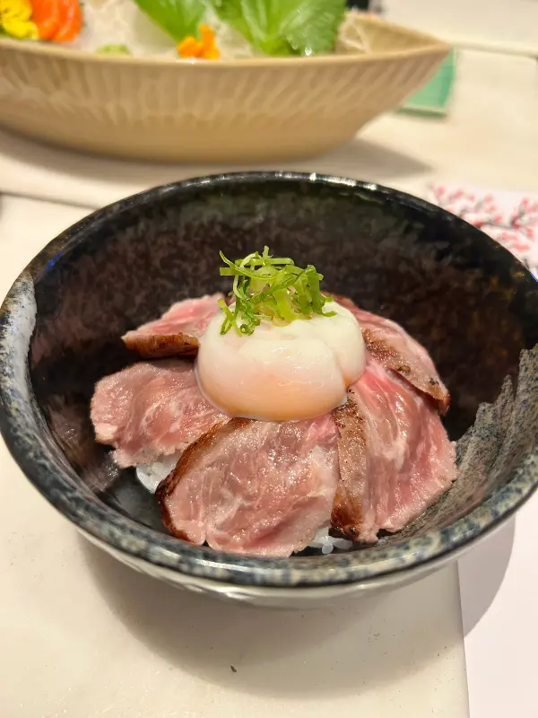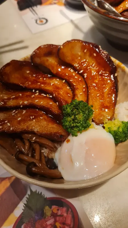 윤기가 흐르는 돼지고기 덮밥은 달콤하면서도 짭짤한 맛이 일품이었다. 밥 위에 얹어진 돼지고기는 입안에서 살살 녹았고, 함께 제공된 온천 계란과 함께 먹으니 더욱 풍성한 맛을 느낄 수 있었다. 덮밥과 함께 나온 브로콜리는 신선함을 더해주어 덮밥의 풍미를 한층 끌어올렸다.