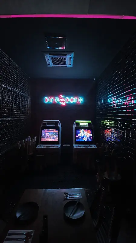 펍에 들어서자마자 강렬한 네온사인과 인더스트리얼 스타일의 인테리어가 눈에 들어왔다. 붉은 조명이 감도는 내부는 묘한 분위기를 자아내며, 90년대 팝 음악이 흘러나와 어깨를 들썩이게 만들었다. 마치 시간여행을 온 듯한 기분! 한쪽에는 추억의 딩동 아케이드 게임기가 놓여 있어 향수를 더욱 자극했다.