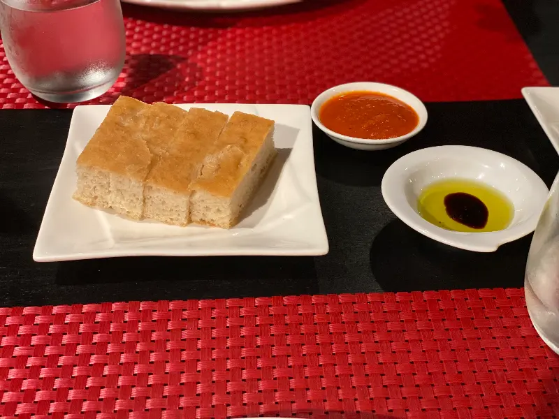 주문 후, 식전 빵과 함께 올리브 오일과 발사믹 식초가 나왔다. 따뜻하게 데워진 빵은 겉은 바삭하고 속은 촉촉했으며, 올리브 오일과 발사믹 식초의 풍미가 더해져 입맛을 돋우기에 충분했다.