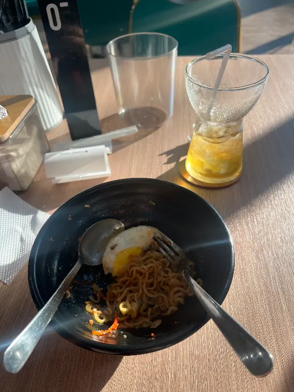 가게에 들어서는 순간부터 나갈 때까지, 직원들의 친절한 서비스에 감동했다. 주문을 받는 모습부터 음식을 서빙하는 모습까지, 모든 직원이 밝은 미소와 함께 친절하게 응대해 주었다. 음식도 정말 빨리 나왔다. 1분밖에 걸리지 않았다는 리뷰가 과장이 아니었다. 덕분에 나는 더욱 편안하고 기분 좋게 시간을 보낼 수 있었다.