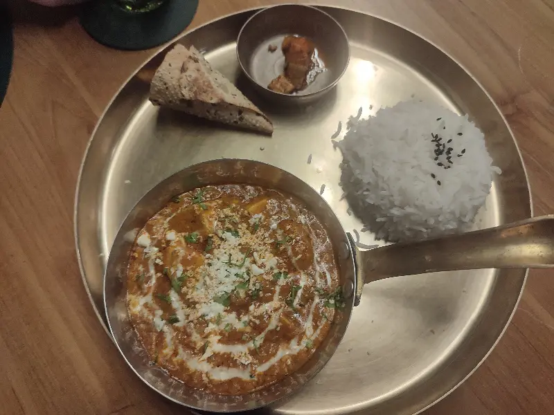가장 먼저 팔락 파니르를 맛보았다. 부드러운 시금치 페이스트와 신선한 코티지 치즈의 조화가 환상적이었다. 입안 가득 퍼지는 향신료의 풍미는 마치 인도 여행을 떠나온 듯한 착각을 불러일으켰다. 특히, 갓 구워져 나온 난에 팔락 파니르를 듬뿍 찍어 먹으니 그 맛이 배가 되었다. 은은하게 퍼지는 버터 향과 쫄깃한 난의 식감이 팔락 파니르의 풍미를 더욱 깊게 만들어 주었다.
