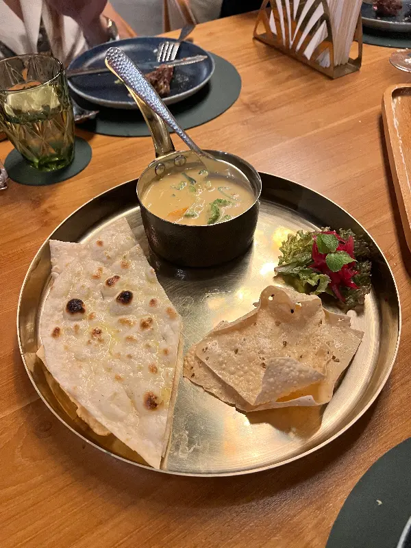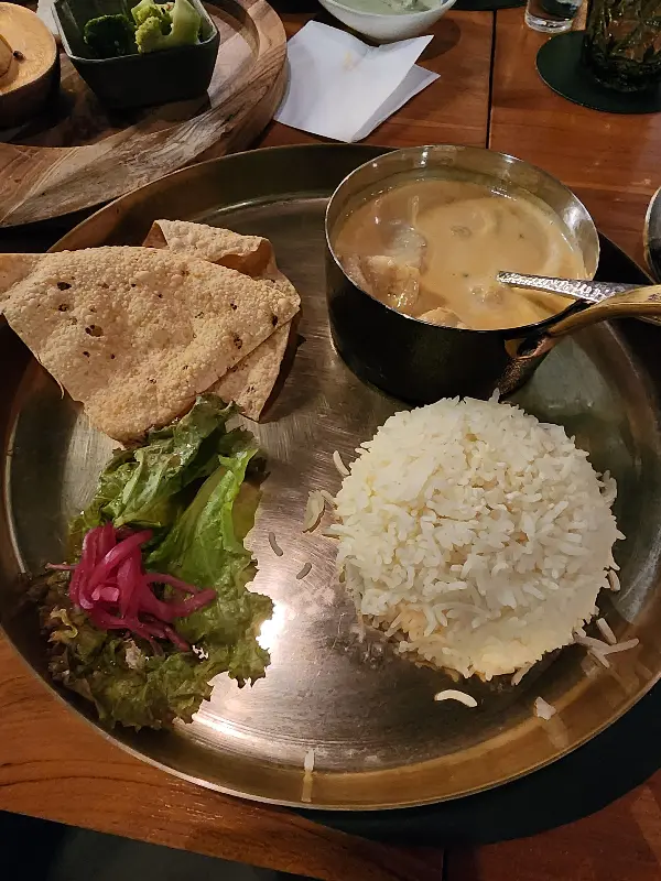 고민 끝에 팔락 파니르(Palak Paneer)와 탄두리 치킨, 그리고 바텐더가 추천해 준 네그로니 칵테일을 주문했다. 잠시 후, 테이블 위로 하나둘씩 차려지는 음식들을 보니 절로 미소가 지어졌다. 진한 녹색의 팔락 파니르는 보기만 해도 건강해지는 느낌이었고, 탄두리 치킨은 겉은 바삭하고 속은 촉촉해 보였다.