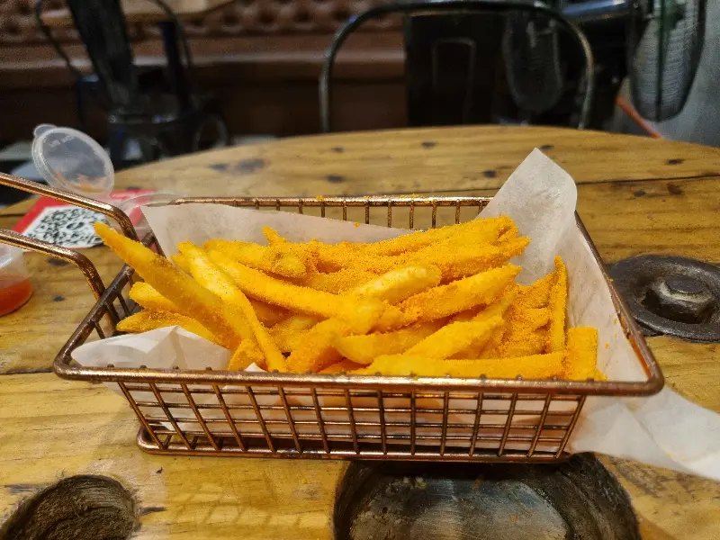짭짤한 시즈닝이 뿌려진 감자튀김.