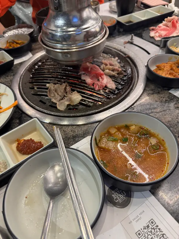 이곳의 대표 메뉴는 단연 삼겹살이다. “삼겹살도 두꺼워서 식감 최고입니다!!!”라는 찬사처럼, 두툼하게 썰어낸 삼겹살은 입안 가득 퍼지는 육즙과 쫄깃한 식감을 자랑한다. 세부에서 흔히 볼 수 있는 얇은 대패 삼겹살과는 차원이 다른 만족감을 선사한다. 특히, 직원들이 직접 구워주는 서비스는 편안하게 식사에만 집중할 수 있도록 돕는다. 마치 집에서 어머니가 구워주는 삼겹살을 먹는 듯한 따뜻함이 느껴진다.