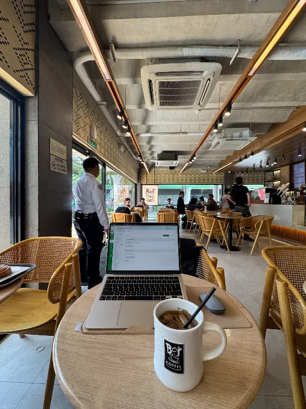 Bo’s Coffee는 새벽에도 영업을 한다는 장점이 있다. 늦은 시간까지 책 작업을 하거나, 이른 아침 샌드위치와 커피로 하루를 시작하는 사람들에게는 더할 나위 없이 좋은 장소이다. 한 손님은 이곳에서 10일 정도 책 작업을 했는데, 직원분들이 정말 친절했다고 칭찬했다. 다만 테라스에 있으면 매연이 조금 아쉽다는 의견도 있었다.