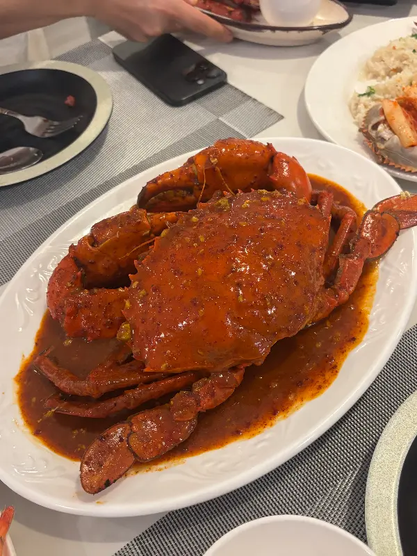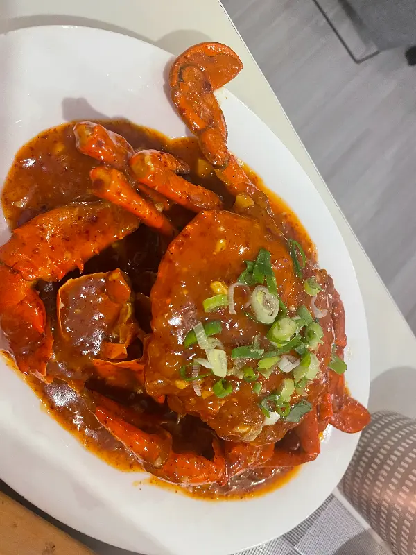 드디어 기다리고 기다리던 크랩이 나왔습니다. 붉은 양념이 듬뿍 발린 크랩의 모습은 보기만 해도 군침이 돌았습니다. 한 입 베어 무니, 입안 가득 퍼지는 풍부한 맛에 감탄사가 절로 나왔습니다. 신선한 크랩의 살은 탱글탱글했고, 매콤하면서도 달콤한 양념은 정말 환상적인 조화를 이루었습니다. 마치 한국의 해물찜을 먹는 듯한 느낌도 들었는데, 콩나물이 없는 대신 크랩의 풍미가 더욱 깊게 느껴졌습니다.