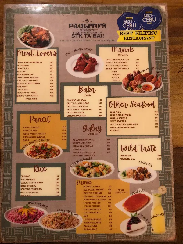 자리에 앉아 메뉴판을 펼쳐 들었다. 다양한 필리핀 전통 음식들이 눈길을 사로잡았다. 참치 턱살 구이, 가리비 구이, 크랩 요리 등 먹음직스러운 메뉴 사진들이 식욕을 자극했다. 어떤 메뉴를 골라야 할지 고민될 때는, 메뉴판 가장 위에 있는 ‘Tuna Belly’를 선택하는 것이 좋다는 리뷰를 참고했다.