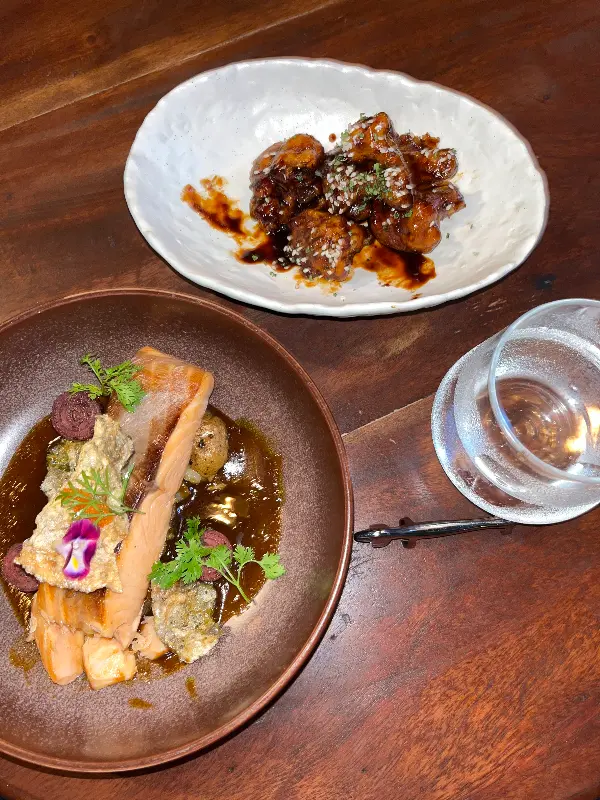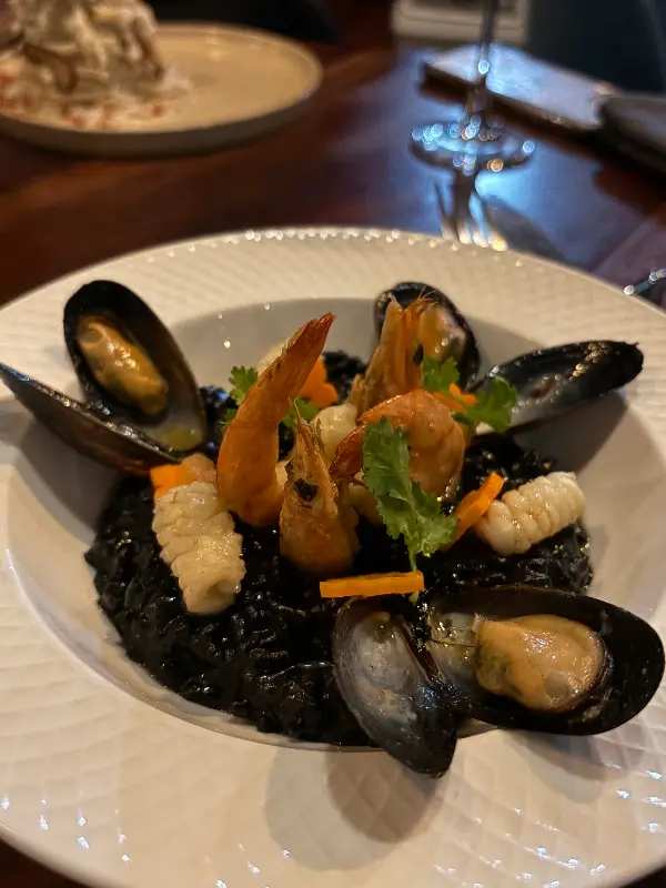 고민 끝에 Korean Cauliflower와 Seafood Risotto를 주문했다. 먼저 나온 Korean Cauliflower는 양념치킨을 콜리플라워로 재해석한 요리였다. 바삭하게 튀겨진 콜리플라워에 달콤 매콤한 양념이 어우러져, 낯설면서도 익숙한 맛을 선사했다. 콜리플라워의 신선함과 양념의 조화가 훌륭했다. Seafood Risotto는 신선한 해산물이 듬뿍 들어간 리조또였다. 짭짤하면서도 고소한 맛이 입안 가득 퍼져 나갔다. 쌀알 하나하나에 스며든 해산물의 풍미가 일품이었다. 검은 먹물 리조또 위에 올려진 새우와 홍합, 오징어의 조화는 시각적으로도 훌륭했다. 한 입 맛보는 순간, 바다의 향기가 입안 가득 퍼지는 듯했다.