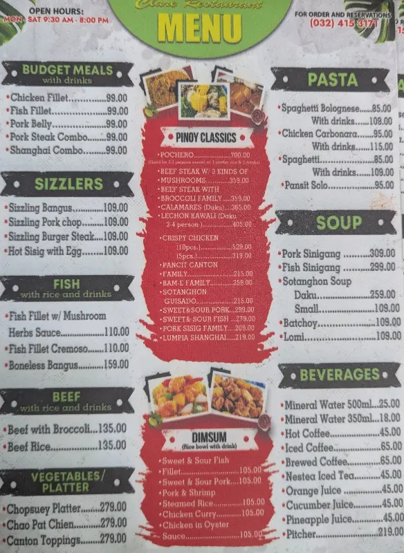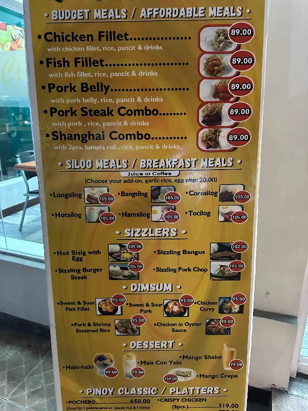 클레어 레스토랑의 첫인상은 ‘푸짐함’ 그 자체였습니다. 테이블 위에 놓인 메뉴판을 펼쳐보니 다양한 필리핀 전통 음식들이 눈길을 사로잡았습니다. 시시그, 레촌 카와리, 로미 등 이름만 들어도 군침이 도는 메뉴들이 저렴한 가격에 판매되고 있었습니다. 학생 손님들이 많은 이유를 단번에 알 수 있었습니다.