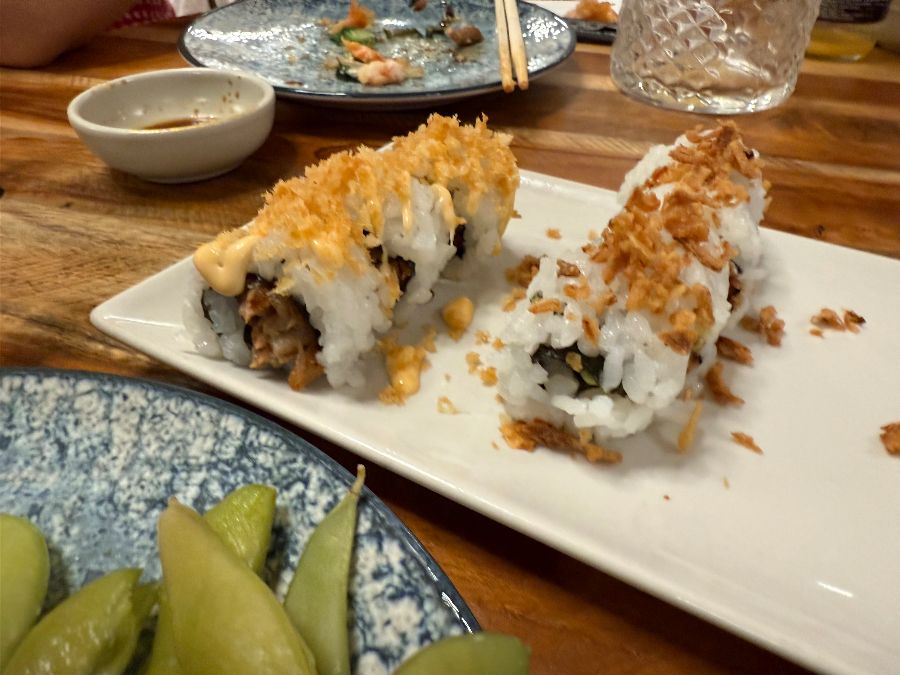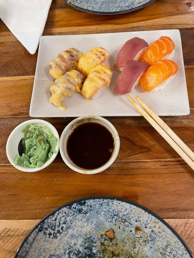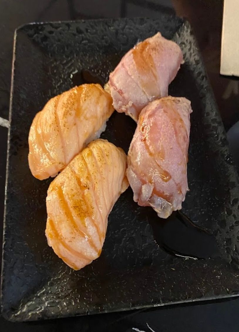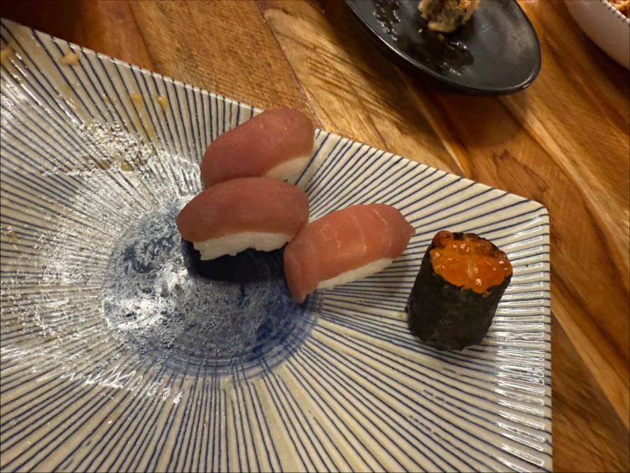 이곳의 스시는 연어, 참치, 버터피시 니기리를 비롯하여 매콤한 마요네즈를 곁들인 니기리 등 다양한 종류를 자랑합니다. 밥 위에 올려진 신선한 생선은 부드러운 식감과 함께 입안 가득 바다의 풍미를 선사합니다. 특히 연어 사시미는 붉은 살결에 흰 마블링이 아름답게 어우러져 보는 것만으로도 식욕을 돋우며, 한 점 한 점 정성스럽게 썰어낸 모습은 이곳이 생선 퀄리티에 신경 쓰고 있음을 짐작하게 합니다.