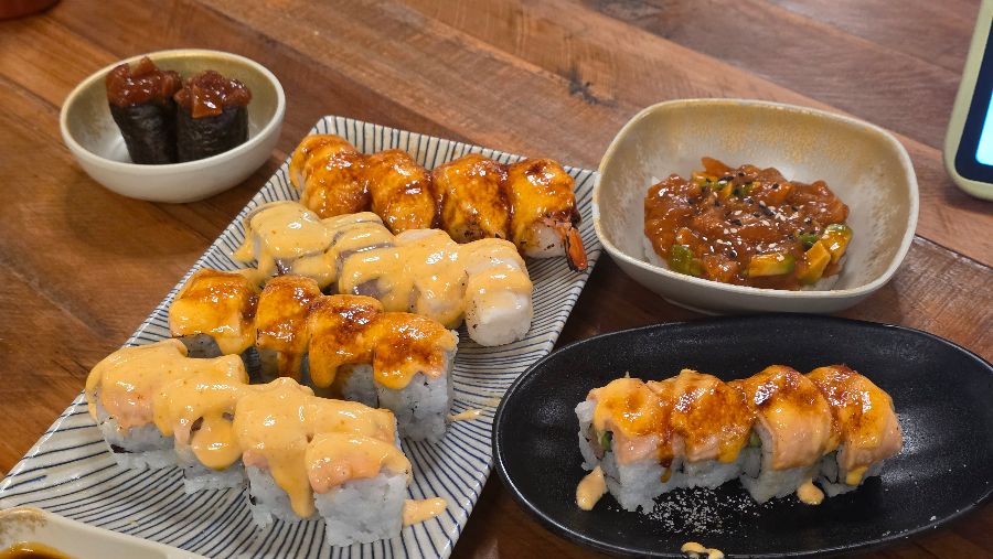 다만, 일부 리뷰에서는 생선 퀄리티가 평범한 뷔페 회 정도라는 의견과 함께, 스시 밥이 차갑거나 냉장고에 오래 있었던 것 같다는 아쉬움도 있었습니다. 하지만 대체적으로 음식의 질이 좋다는 평이 많으며, 특히 니기리는 밥이 꽤 푸짐하면서도 생선 양이 적당하여 만족스러운 식감을 제공한다고 합니다. 다양한 롤 메뉴들도 시선을 사로잡습니다. 아보카도와 연어가 어우러진 롤부터, 고소한 소스가 뿌려진 퓨전 롤까지, 개성 넘치는 비주얼은 먹기 전부터 기대감을 높입니다. 신선한 재료와 정성스러운 플레이팅은 이곳이 단순한 뷔페가 아님을 증명하는 듯합니다.