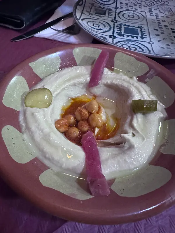 알 술탄의 후무스. 병아리콩의 고소함과 레몬의 상큼함이 조화롭게 어우러진, 입맛을 돋우는 애피타이저입니다.