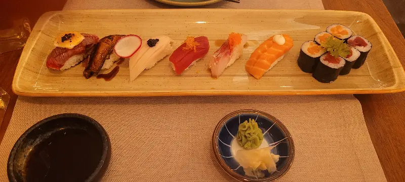 저녁 시간, 활기 넘치는 세비야 거리를 지나 한적한 골목길에 들어섰을 때, 은은한 조명이 새어 나오는 작은 스시집이 눈에 띄었다. 웨이팅 없이 바로 자리에 앉을 수 있었던 건 행운이었다. 깔끔하고 정갈한 분위기가 마음에 쏙 들었다.