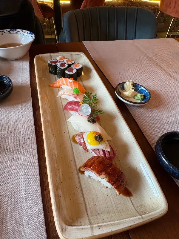 다채로운 종류의 스시가 한 접시에, 눈과 입이 모두 즐거운 경험이었다.