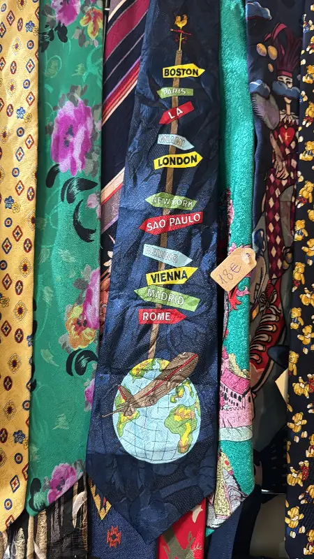 특히 눈에 띄었던 것은 각국의 도시 이름이 적힌 넥타이였습니다. 보스턴, 런던, 상파울루, 비엔나, 로마 등 세계 각지를 향하는 화살표가 그려진 디자인은 여행을 좋아하는 저의 마음을 설레게 했습니다. 마치 이 넥타이를 매고 세계 곳곳을 누비는 상상을 하게 만들었죠.
