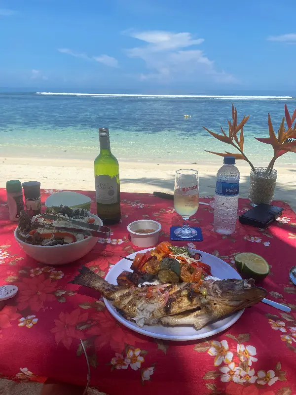 야자수 그늘 아래, 파도 소리를 들으며 즐기는 식사는 그야말로 천국과 같았습니다. 부드러운 바람이 살랑살랑 불어왔고, 따뜻한 햇살은 우리의 피부를 부드럽게 감쌌습니다. 우리는 마치 꿈을 꾸는 듯한 기분으로, 맛있는 음식을 음미했습니다.