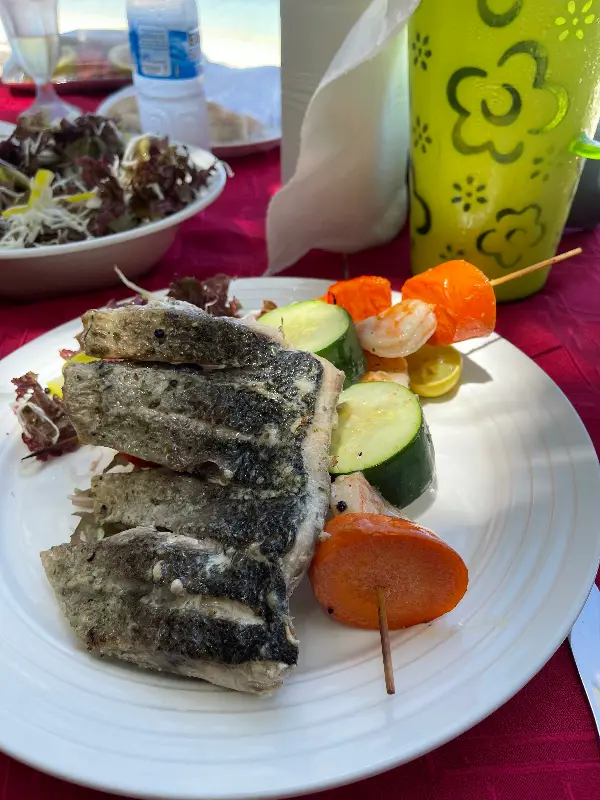 특히 붉돔 구이는 겉은 바삭하고 속은 촉촉한 완벽한 조화를 이루었습니다. 신선한 붉돔의 풍미는 입 안 가득 퍼져 나갔고, 숯불 향은 은은하게 미각을 자극했습니다. 새우 케밥 또한 신선한 새우와 야채가 어우러져 환상적인 맛을 선사했습니다. 수제 드레싱을 곁들인 샐러드는 신선함이 살아있었고, 바비큐의 풍미를 더욱 돋보이게 했습니다.