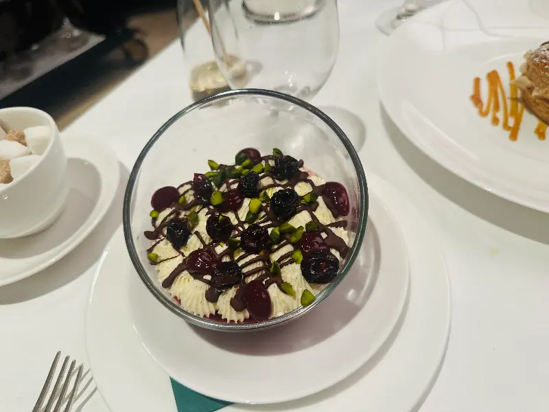 다음으로 윌튼스의 대표 메뉴 중 하나인 도버 솔 뫼니에르를 주문했습니다. 버터 향이 은은하게 풍기는 도버 솔은 겉은 바삭하고 속은 촉촉했습니다. 부드러운 생선 살은 입안에서 살살 녹았고, 풍부한 버터 소스는 도버 솔의 풍미를 한층 더 끌어올렸습니다. 한 리뷰어는 윌튼스를 “런던 최고의 해산물 레스토랑 중 하나”라고 극찬하며, 도버 솔 뫼니에르를 “가장 마음에 들었던 요리”라고 꼽았습니다. 윌튼스에서는 메뉴에 없는 송어를 주문할 수도 있다고 하니, 방문 시 참고하면 좋을 것 같습니다.