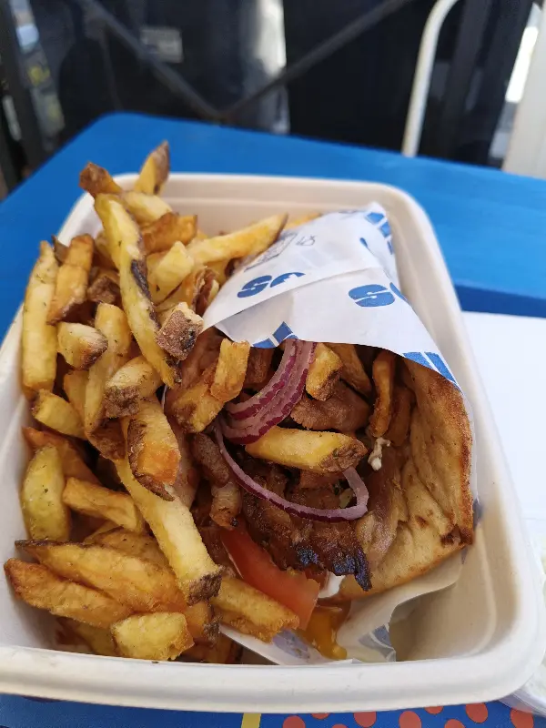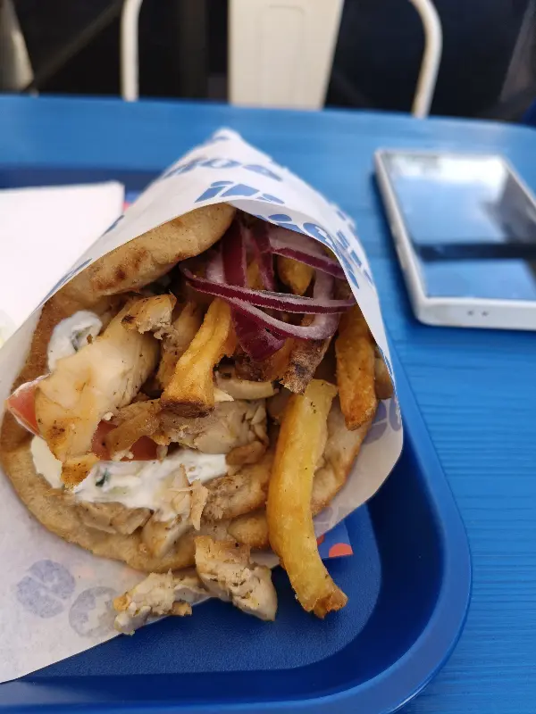 갓 구워져 나온 따뜻한 피타 빵 속에 신선한 채소와 육즙 가득한 고기가 듬뿍 들어간 자이로는 한 입 베어 물자마자 입안 가득 풍미가 퍼져 나갔습니다. 특히, 짭짤하면서도 고소한 맛이 일품인 자이로는 맥주와 환상적인 궁합을 자랑합니다. 야외 테이블에 앉아 시원한 맥주와 함께 자이로를 즐기니, 마치 그리스의 어느 해변가에 와 있는 듯한 기분이 들었습니다.