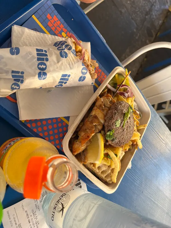 일리오스에 들어서자마자 활기찬 에너지가 느껴집니다. 친절한 직원들은 밝은 미소로 손님을 맞이하고, 주문을 받는 동안에도 유쾌함을 잃지 않습니다. 마치 그리스의 어느 작은 마을 식당에 온 듯한 착각을 불러일으키는 따뜻함입니다. 실내 좌석뿐만 아니라 야외 테이블도 마련되어 있어, 날씨가 좋은 날에는 바깥에서 여유롭게 식사를 즐길 수 있습니다. 특히, 깨끗하게 관리된 화장실은 작은 부분이지만 방문객을 배려하는 마음이 느껴집니다.