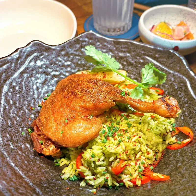 문을 열자마자 눈 앞에 펼쳐진 것은 마치 비밀 정원에 들어온 듯한 신비로운 분위기였다. 은은한 나무 향이 코끝을 간지럽히고, 벽면을 가득 채운 생동감 넘치는 줄무늬는 열대의 활기찬 에너지를 불어넣었다. 아늑하면서도 세련된 인테리어는 특별한 저녁 식사를 위한 완벽한 배경이 되어주었다. 누군가는 이곳을 “아름답고 아늑한 분위기”라고 칭찬했는데, 그 표현이 완벽하게 들어맞는 공간이었다.