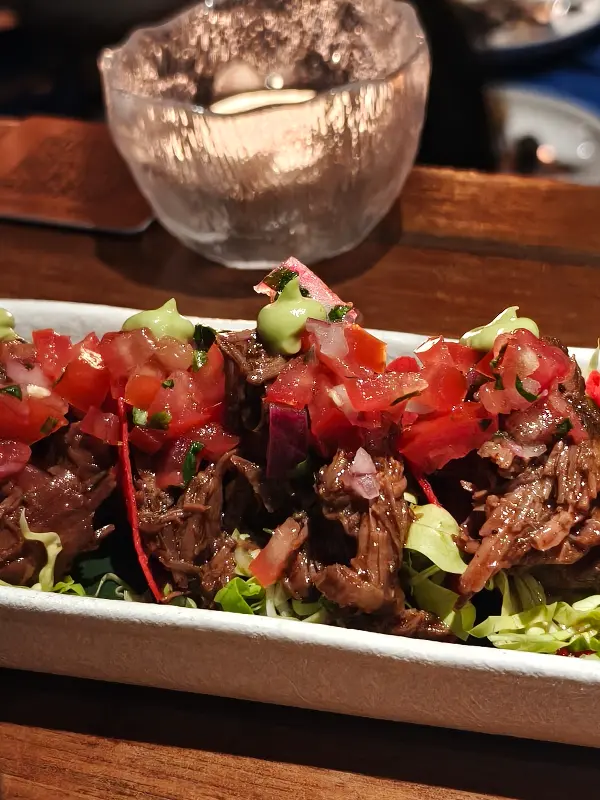가장 먼저 등장한 것은 PRAWN ACEVICHADO. 한 입 베어 무는 순간, 입안 가득 퍼지는 상큼한 소스가 잊을 수 없는 강렬한 인상을 남겼다. 신선한 새우의 탱글탱글한 식감과 아삭한 채소의 조화는 입맛을 돋우기에 충분했다. 리뷰에서 “PRAWN ACEVICHADO 강력추천!!!” 이라는 말이 괜히 나온 게 아니었다.