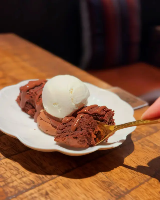 훌륭한 식사의 마지막을 장식하는 디저트 타임. 하지만 아쉽게도 디저트는 우리의 입맛에는 다소 달았다. 좀 더 가볍고 산뜻한 디저트 옵션이 있었다면 완벽했을 것 같다는 아쉬움이 남았다. 브라우니 쿠키 두 개는 세 명이 나눠 먹기에는 양이 조금 많았다.