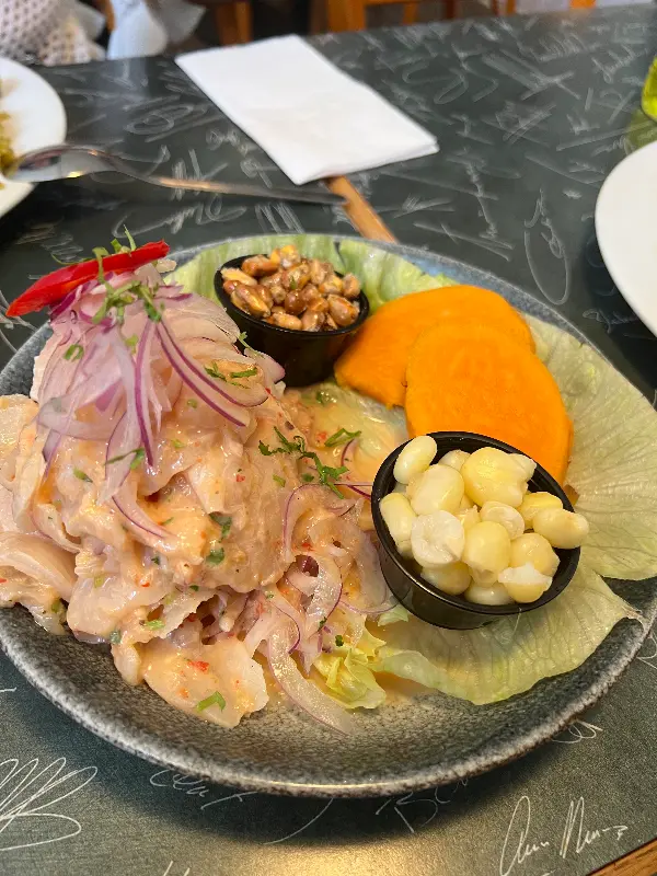 자리에 앉자마자 메뉴판을 정독했다. 처음 보는 페루 음식 이름들이 가득했지만, 친절한 직원 덕분에 어렵지 않게 메뉴를 고를 수 있었다. 직원들은 페루 음식에 대한 자부심이 대단했고, 각각의 요리에 대해 자세하게 설명해 주었다. 특히, 세비체와 해산물 볶음밥, 그리고 대구 요리는 꼭 먹어봐야 한다는 추천에 솔깃했다.