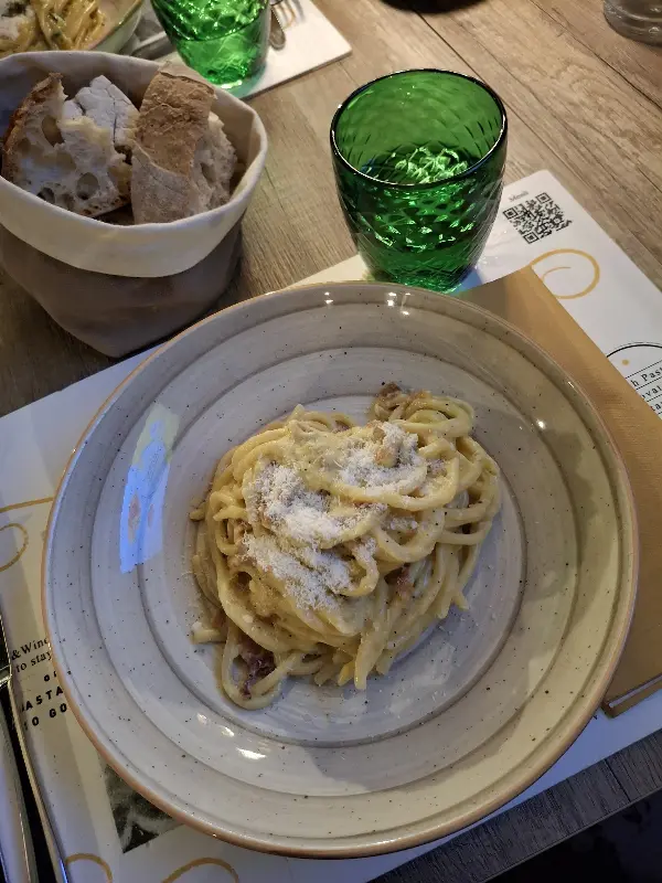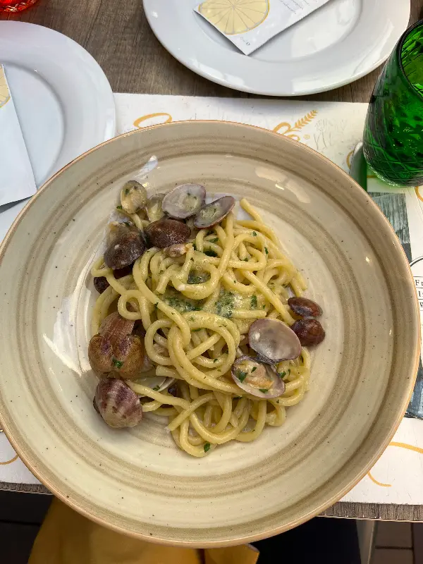 이곳의 봉골레는 한국에서 흔히 먹는 봉골레와는 확연히 달랐습니다. 국물이 자작한 스타일이 아닌, 만떼까레 방식으로 만들어진 파스타였습니다. 면은 일반적인 스파게티 면보다 조금 더 두꺼웠고, 세몰라 가루로 만들어져 쫄깃한 식감이 일품이었습니다. 입안 가득 퍼지는 바다의 향과 깊은 풍미는 잊을 수 없는 맛을 선사했습니다.