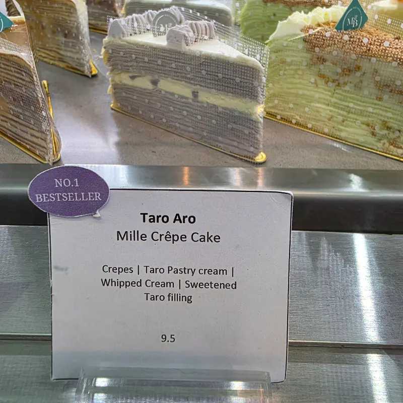 쇼케이스 안에 진열된 타로 밀 크레페 케이크는 No.1 베스트셀러임을 자랑스럽게 뽐내고 있다.