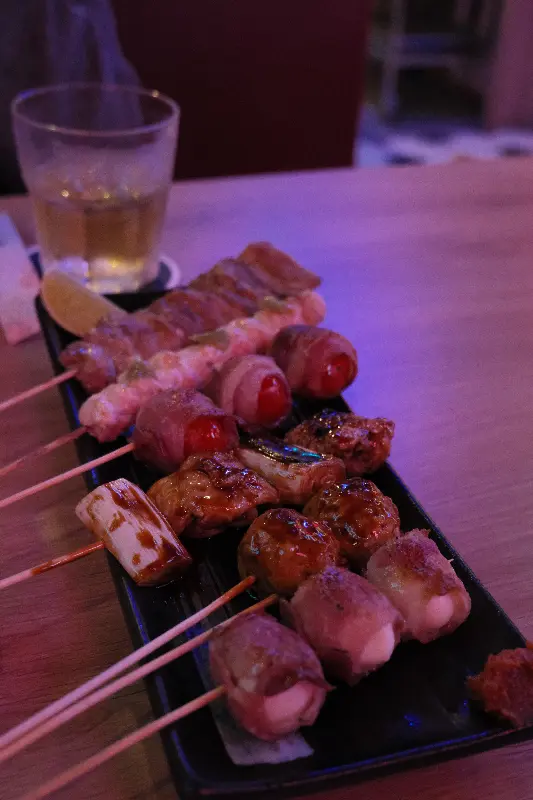 무엇을 먹을까 고민하다가, 이자카야의 대표 메뉴인 ‘400k 콤보’와 ‘망고 스시’를 주문했다. 잠시 후, 테이블 위로 먹음직스러운 음식들이 하나둘씩 차려졌다. 400k 콤보는 다양한 종류의 꼬치와 튀김, 그리고 샐러드로 구성되어 있었다. 꼬치는 닭고기, 돼지고기, 새우 등 다양한 재료를 사용하여 다채로운 맛을 즐길 수 있었다. 튀김은 바삭하고 고소했으며, 샐러드는 신선하고 상큼했다. 특히 망고 스시는 처음 맛보는 독특한 조합이었는데, 신선한 망고의 달콤함과 밥의 조화가 환상적이었다.