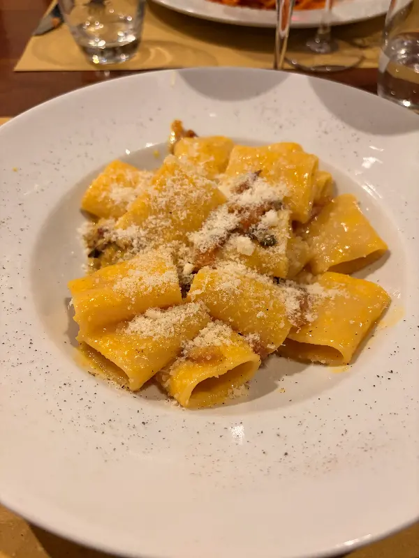 친구들과 함께 이 레스토랑에서 저녁을 먹으면서, 다양한 전통 요리를 맛볼 수 있었습니다. 저는 카초 에 페페를 먹었는데 괜찮았지만 특별할 건 없었습니다. 하지만, 다른 친구들이 주문한 메뉴들은 모두 훌륭했습니다. 특히, 리코타 치즈와 리초올레니 타르트는 정말 맛있었습니다. 여자친구와 함께 방문했을 때는, 전형적인 카르보나라와 아마트리치아나 대신, 조금 더 색다른 첫 번째 코스를 먹어봤는데, 푸짐하고 맛있었습니다. 서비스는 훌륭하고 빨랐으며, 음식의 양도 만족스러웠습니다.
