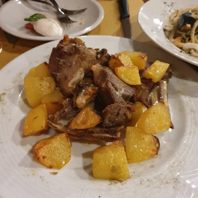 겉은 바삭하고 속은 촉촉하게 구워진 감자와 부드러운 고기의 조화가 환상적입니다. 로마의 푸근한 인심이 느껴지는 넉넉한 양 또한 만족스럽습니다.