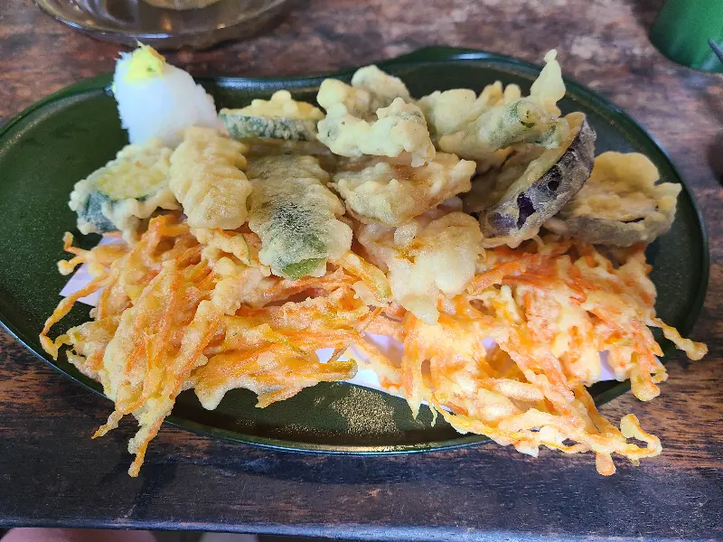 정갈하게 담겨 나온 덴뿌라. 바삭한 튀김옷이 식감을 자극한다.