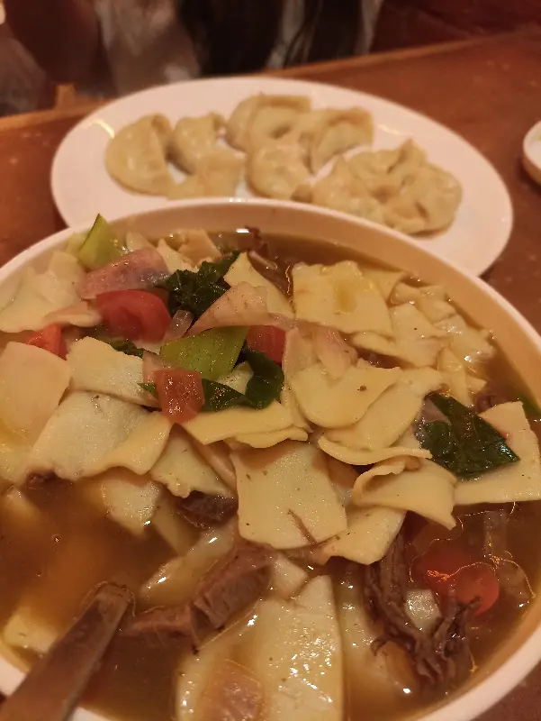 이어서 나온 땜뚝 버팔로우 고기는 정말 놀라웠습니다. 버팔로우 고기 특유의 쫄깃하면서도 부드러운 식감이 입안에서 살살 녹았습니다. 깊고 진한 육수는 추운 날씨에 언 몸을 따뜻하게 녹여주는 듯했습니다. 땜뚝 한 그릇에는 티베트의 따뜻한 정이 담겨 있는 듯했습니다.