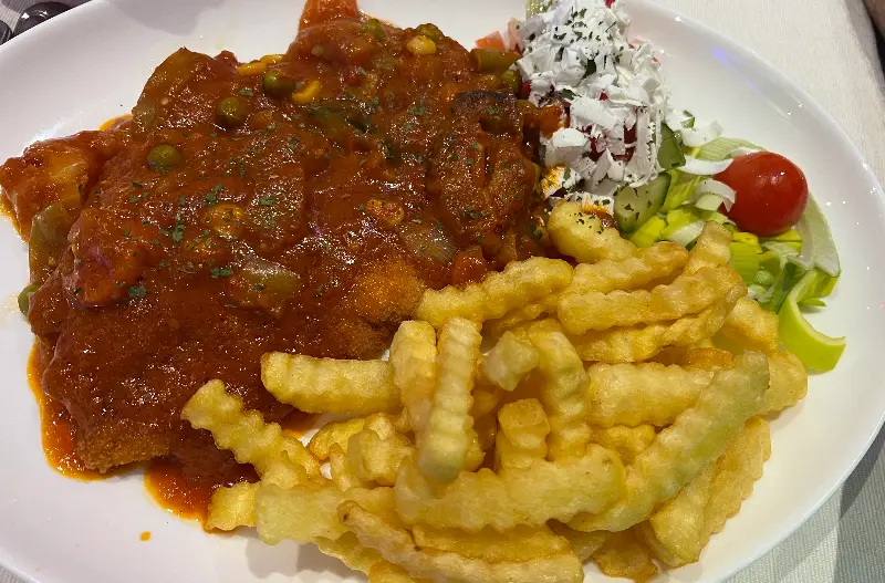 목요일은 Adria 레스토랑의 “슈니첼 당일”입니다. 바삭하게 튀겨진 슈니첼은 이곳의 인기 메뉴 중 하나입니다. 겉은 바삭하고 속은 촉촉한 슈니첼은 곁들여 나오는 신선한 샐러드와 함께 먹으면 그 맛이 배가 됩니다. 길가 주차가 다소 불편할 수 있지만, 슈니첼을 맛보기 위해 기꺼이 감수할 만한 가치가 있습니다. 슈니첼을 주문하면, 갓 튀겨져 나온 따뜻한 슈니첼에서 풍기는 고소한 냄새가 코를 자극하고, 입안 가득 퍼지는 풍미는 행복감을 선사합니다.