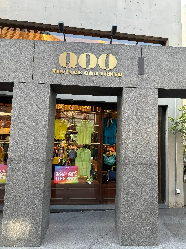 멀리서부터 눈에 띄는 빈티지 구구 도쿄의 외관은 웅장하면서도 세련된 느낌을 자아냈다. 회색빛 돌로 만들어진 견고한 프레임은 마치 고대의 성문을 연상시키는 듯했고, 그 안으로 보이는 형형색색의 명품들은 발길을 멈추게 했다. 입구에 들어서자, ‘VINTAGE QOO TOKYO’라는 금빛 글자가 빛나며 고급스러움을 더했다.