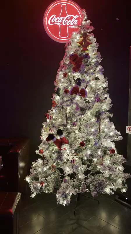 바 한켠에 자리잡은 크리스마스 트리. 코카콜라 네온사인이 레트로한 분위기를 더한다.