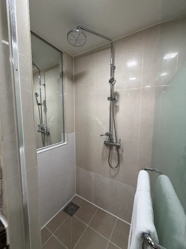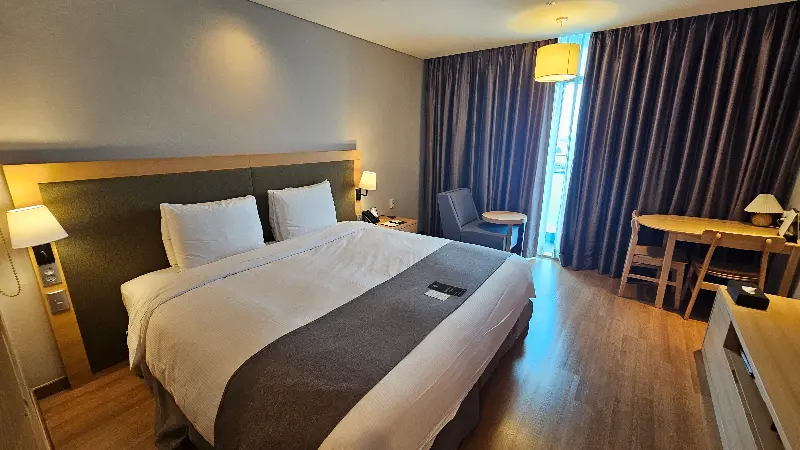 객실 문을 열고 들어서자, 넓고 깨끗한 공간이 눈에 들어왔다. 짐을 놓을 수 있는 넉넉한 공간과 편안한 침대는 휴식을 위한 최적의 조건을 제공했다. 특히, 객실 전체가 금연이라는 점이 마음에 들었다. 은은하게 퍼지는 몰튼브라운 어메니티 향은 쾌적함을 더했다.