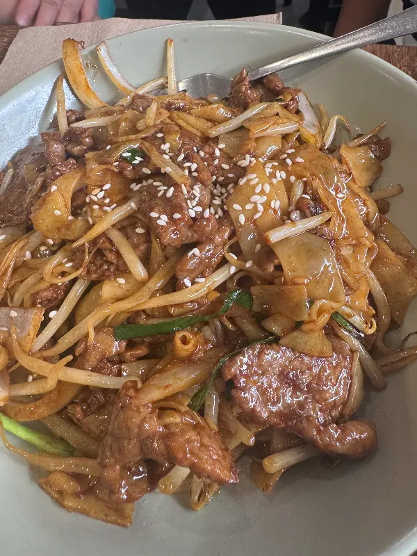 소고기 볶음면은 쫄깃한 면발과 부드러운 소고기의 조화가 훌륭했습니다. 면발은 탱글탱글했고, 소고기는 입에서 살살 녹았습니다. 고소한 참깨가 듬뿍 뿌려져 있어 풍미를 더했습니다. 볶음면은 젓가락으로 휘저을 때마다 김이 모락모락 피어올랐고, 그 향긋한 냄새는 코를 즐겁게 했습니다.