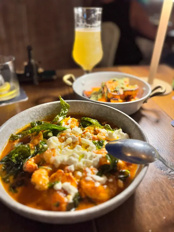 따뜻한 빵 위에 사가나키를 올려 한 입 베어 물자, 입안 가득 퍼지는 풍미에 감탄했다. 토마토 소스의 깊은 맛과 페타 치즈의 짭짤함, 바질의 향긋함이 완벽한 조화를 이루었다. 특히 통통한 새우의 식감은 미각을 자극하며, 잊을 수 없는 맛을 선사했다.
