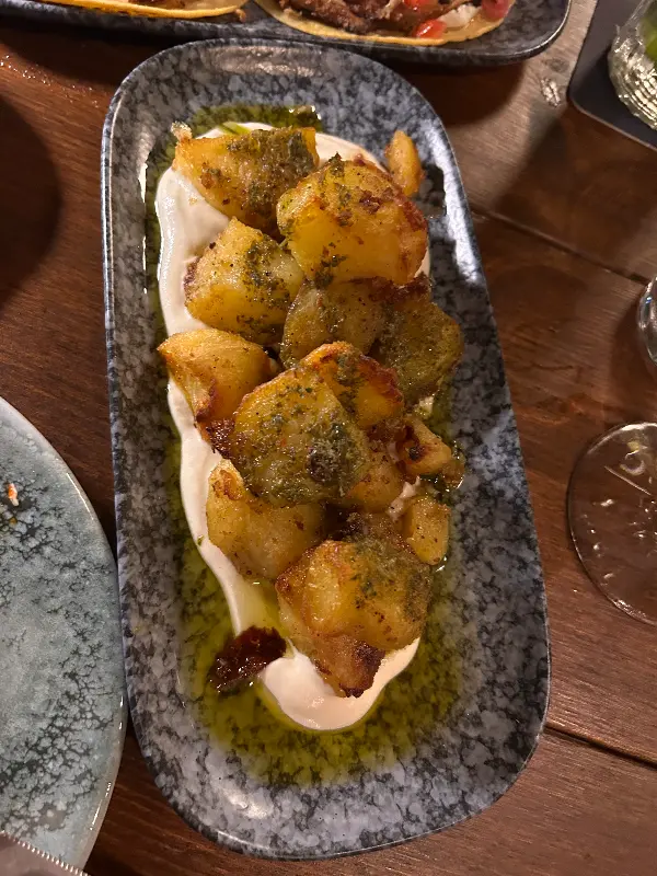 우리는 그의 추천에 따라 타파스 몇 가지와 와인을 주문했다. 잠시 후, 테이블 위에는 아름다운 색감의 요리들이 하나둘씩 놓이기 시작했다. 붉은 빛깔의 토마토와 하얀 페타 치즈, 초록색 바질이 조화롭게 어우러진 새우 사가나키는 보기만 해도 입맛을 돋우었다.