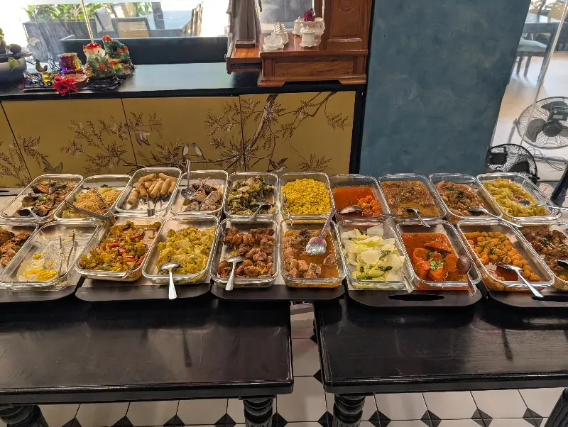 이곳의 또 다른 매력은 바로 점심 뷔페였다. 평일 오전 11시부터 오후 3시까지 운영되는 점심 뷔페는 1시간 동안 약 20가지 종류의 음식을 맛볼 수 있다. 가격 또한 매우 저렴해서 부담 없이 즐길 수 있다는 장점이 있다. 다양한 종류의 베트남 음식과 일반적인 요리들이 준비되어 있으며, 특히 닭고기와 돼지고기 요리가 인기라고 한다.