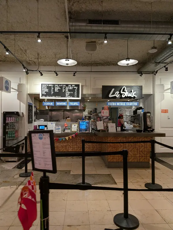 스털링 푸드 홀, 그곳은 마치 미지의 세계로 통하는 관문과 같았다. 문을 열고 들어서는 순간, 활기 넘치는 분위기와 맛있는 냄새가 코를 간지럽혔다. 하지만 늦은 시간 탓인지, 문을 닫은 식당들이 꽤 있어서 살짝 실망감이 감돌았다. 그때, 한 줄기 빛처럼 내 눈에 들어온 곳이 있었으니, 바로 라슈크 스트리트 푸드(La Shuck Street Food)였다.