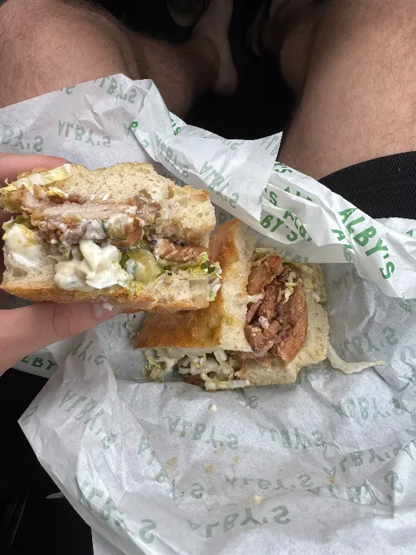 Alba’s는 누구나 좋아할 만한 독특한 샌드위치 메뉴를 자랑합니다. 튀김옷 입힌 닭다리살 샌드위치는 겉은 바삭하고 속은 촉촉한 닭고기와 신선하고 새콤달콤하면서 매콤한 소스가 완벽한 조화를 이루며, 아삭하게 씹히는 양배추는 식감을 더욱 풍성하게 만들어줍니다.