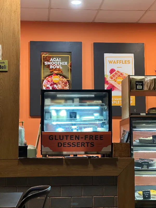 문을 열고 들어서자 아늑하고 편안한 분위기가 느껴졌다. 오렌지색 벽에는 “Acai Smoothie Bowl”과 “Waffles” 포스터가 걸려 있었고, 쇼케이스 안에는 ‘GLUTEN-FREE DESSERTS’라고 쓰여 있었다. 마치 나만을 위한 공간인 듯한 느낌에 설레는 마음을 감출 수 없었다.