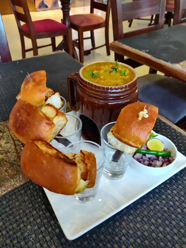 자리에 앉아 메뉴를 살펴보니 파니르 페리 피자, 그릴드 치즈 샌드위치 등 다양한 메뉴가 눈에 띄었다. 우리는 먼저 파브 바지 퐁듀와 스무디를 주문했다. 잠시 후, 정갈하게 প্লেটিং된 음식이 테이블 위에 놓였다. 파브 바지 퐁듀는 보기만 해도 군침이 도는 비주얼을 자랑했다. 퐁듀 팟 안에는 따뜻하고 부드러운 파브 바지가 가득 담겨 있었고, 그 주변으로는 바삭하게 구워진 빵 조각들이 놓여 있었다. 스무디는 은은한 파스텔 색감으로 시선을 사로잡았고, 과일 향이 은은하게 풍겨져 식욕을 돋우었다.