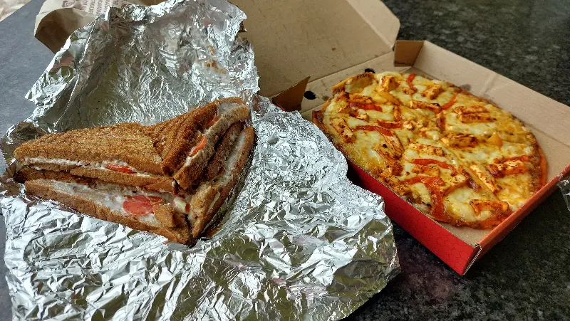 포장된 피자와 샌드위치를 들고 집으로 돌아오는 길, 왠지 모르게 특별한 추억이 될 것 같다는 생각이 들었다. 예상치 못한 정전 때문에 레스토랑에서 직접 맛보지는 못했지만, 집에서 편안하게 즐기는 것도 나쁘지 않았다.